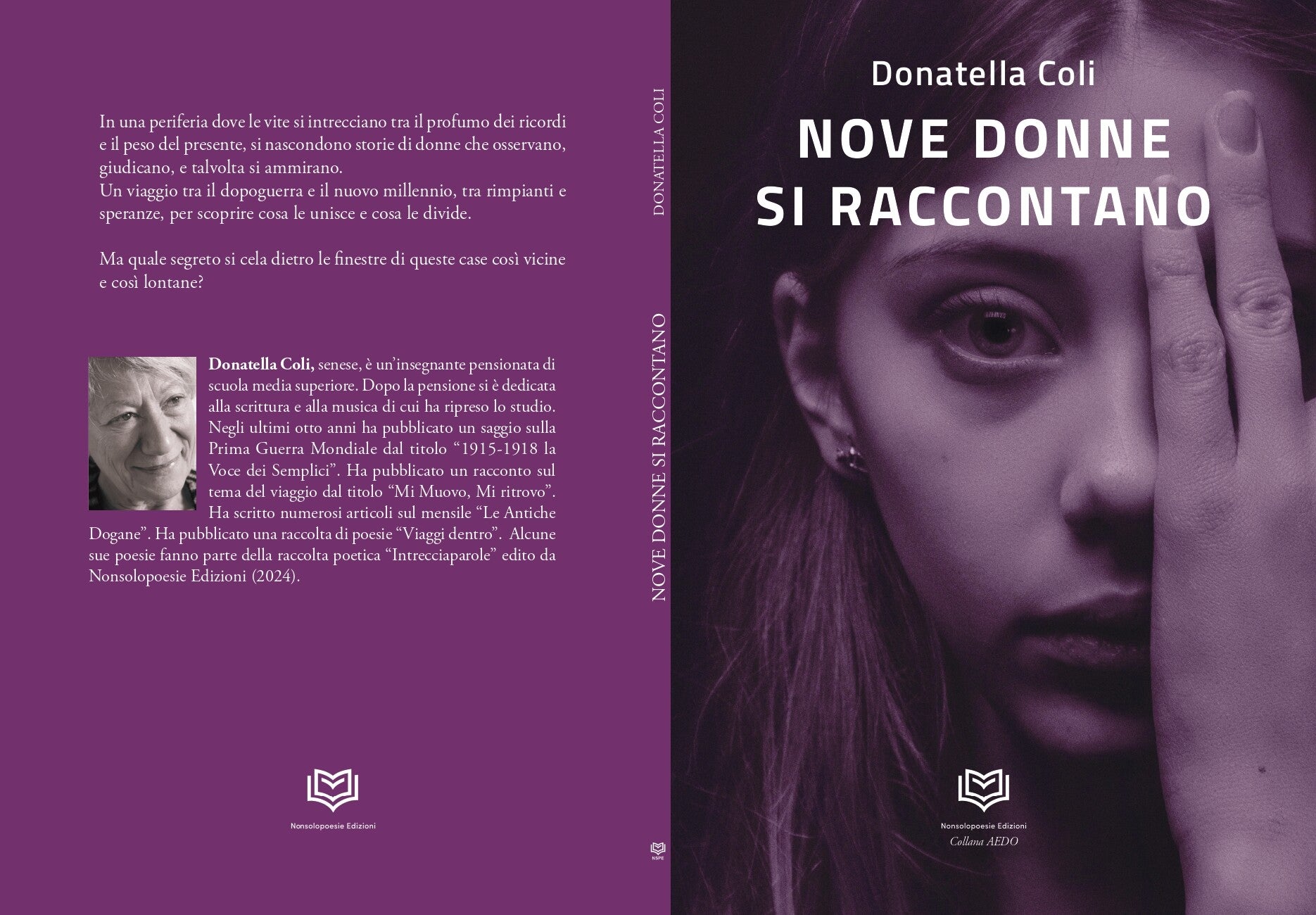 Titolo/Nove donne si raccontano/Autore/Donatella Coli/cartaceo/15x21/copertina/300gr plast.lucida/carta/80gr.avorio/stampa brossura fresata b/n/ Pag/116/Stato/ in commercio/Isbn/9791281178786/15,00 euro